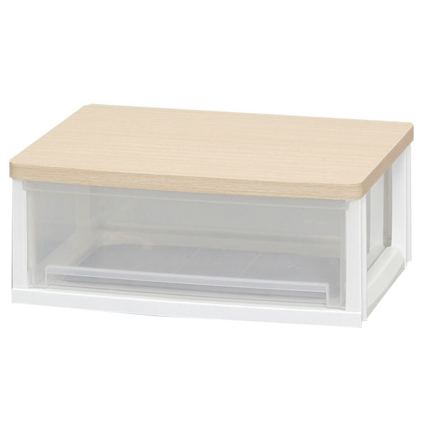 天板がプラスチックのチェストです。引出には開閉がスムーズな金属レールを採用しており、縦置きのYシャツを2枚並べてぴったり収納できるサイズです。着脱かんたんフレームなので、引出しの増減が可能です(7段まで増やすことが可能です)。◆商品サイズ(約):幅55×奥行40×高さ23cm◆引出内寸(約):幅47.5×奥行36×高さ14.5cm◆耐荷重:引出し 約4kg、全体 約4kg◆主要材質 天板・フレーム・本体・引出し:ポリプロピレン 前パネル:スチロール樹脂
