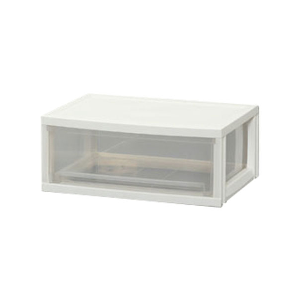 クローゼットや押入れの下段スペースを有効活用!ワイドチェストシリーズの1段タイプです。衣類の整理や、室内・サニタリー等での身の回りの整理・整頓など多目的にご利用頂けます。☆引出しとフレームの間にコロが付いているので、収納物の重量が増えても引出しをスムーズに開閉可能!☆本体の底面に付いたローラーが前後への移動もスムーズにします。☆クリアタイプの引出しで、中身の確認がしやすくなっています。●商品サイズ(cm)本体:幅約53.2×奥行き約38×高さ約22.1(ローラー取付時)引出し:幅約46×奥行き約33×高さ約15●主要材質:ポリプロピレン